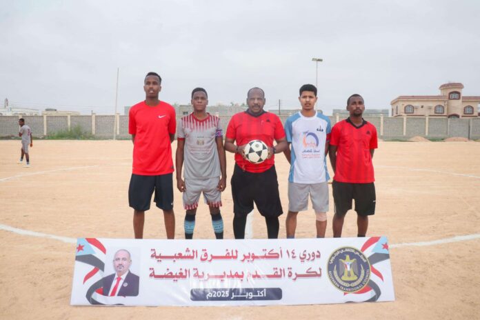 دشنت إدارة الشباب والرياضة بالهيئة التنفيذية للقيادة المحلية للمجلس الانتقالي الجنوبي في محافظة المهرة، اليوم الأربعاء، منافسات دوري كأس الذكرى الـ 62 لثورة 14 أكتوبر لكرة القدم، للفرق الشعبية بمديرية الغيضة، بحضور فريق التوجيه والرقابة.