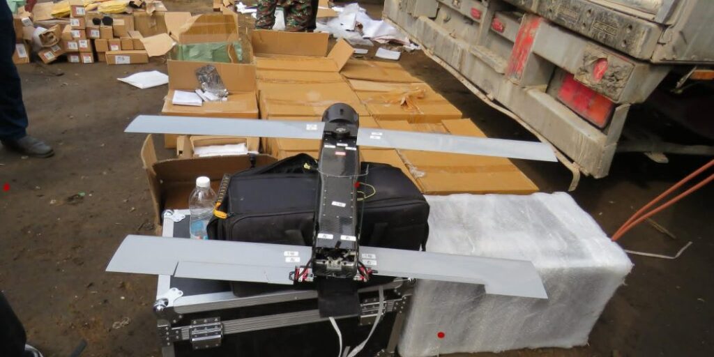 وتضمنت خام المواد المكونة لهياكل وأجسام الطائرات المسيرة من الألياف الكربونية والمواد العازلة والبلاستيك الخام، مع جهاز الحقن الخاص بتشكيل البلاستيك، وسبائك الألومنيوم ومكابس وآلات التقطيع والقياس، وأدوات لحام وأسطوانات أوكسجين، وملابس واقية للمهندسين والفنيين الذين يعملون في مصانع وورش التصنيع.