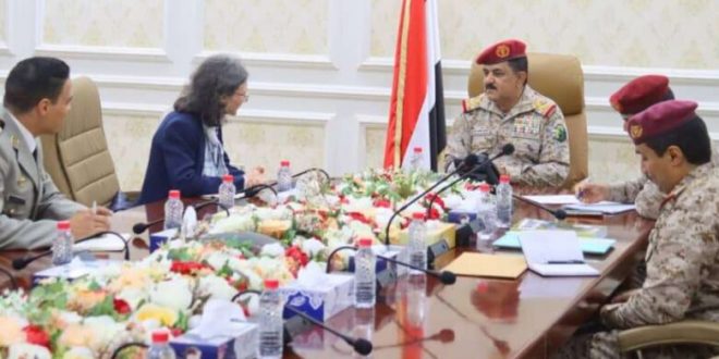 وفي اللقاء الذي حضره رئيس هيئة الاستخبارات العسكرية اللواء الركن احمد محسن، جرى بحث استمرار تهديد مليشيا الحوثي الإرهابية لطرق الملاحة البحرية وتكاتف الجهود لمكافحة تهريب الاسلحة والمخدرات.