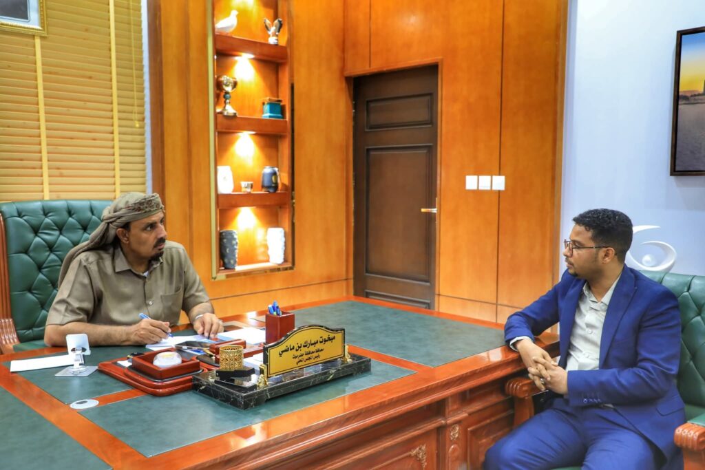 التقى محافظ حضرموت الأستاذ مبخوت مبارك بن ماضي، اليوم بالمكلا، مدير عام مكتب وزارة الشباب والرياضة بالوادي والصحراء الدكتور مجدي سليمان مطران بن طليب، للاطلاع على أوضاع قطاع الشباب والرياضة وسير الأنشطة والبطولات الرياضية في الوادي.