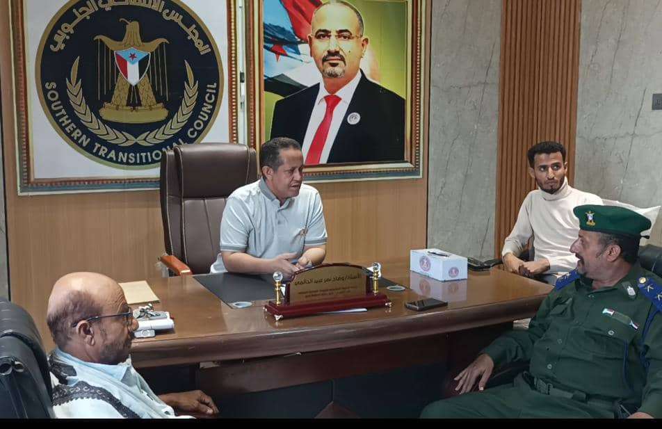التقى رئيس الهيئة التنفيذية للقيادة المحلية للمجلس الانتقالي الجنوبي في محافظة لحج، وضاح نصر الحالمي، اليوم الأربعاء، بالمساعد الأول لمدير الأمن العام والشرطة، مدير شؤون الضباط بالمحافظة، النقيب حسن صالح الدقمي.
