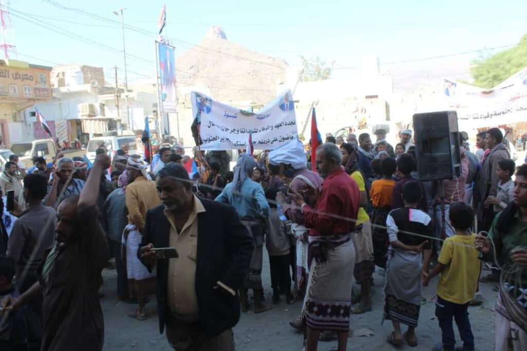 بدورهم، عبّر أبناء مديرية بيحان عن مباركتهم بالانتصارات العسكرية التي حققتها القوات المسلحة الجنوبية، مؤكدين وقوفهم الكامل خلف القيادة السياسية برئاسة الرئيس القائد عيدروس الزُبيدي، واستعدادهم الدائم للمشاركة في كل المواقف الوطنية التي تصون مكتسبات الجنوب وتدعم تطلعات شعبه نحو مستقبل آمن ومستقر.