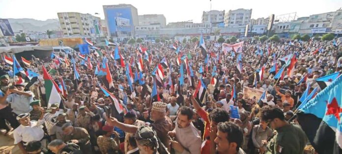 شهدت ساحة العروض في مديرية خور مكسر بالعاصمة عدن، اليوم الاثنين، توافد حشود جماهيرية واسعة من أبناء مديريات الحوطة وتبن والمسيمير، استجابة لدعوة القيادة المحلية للمجلس الانتقالي الجنوبي في محافظة لحج، للمطالبة بإعلان دولة الجنوب العربي.