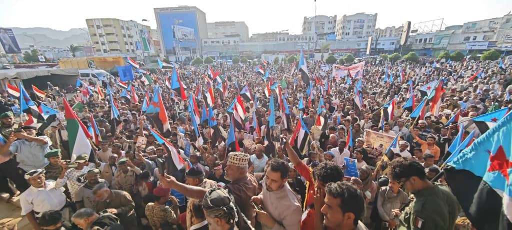 ورفعت الحشود الجماهيرية أعلام الجنوب وصور الرئيس القائد عيدروس الزُبيدي، رئيس المجلس الانتقالي الجنوبي، مرددين الهتافات المطالبة بإعلان دولة الجنوب العربي، والقصائد الوطنية التي عبّرت عن الموقف الثابت لشعب الجنوب ودعمه المستمر للقيادة السياسية.
