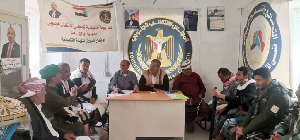 عقدت الهيئة التنفيذية للقيادة المحلية للمجلس الانتقالي الجنوبي في مديرية رصد يافع بمحافظة أبين، اليوم السبت، اجتماعها الدوري لشهر ديسمبر، برئاسة الأستاذ عبدالفتاح أحمد شيخ، نائب رئيس الهيئة التنفيذية.