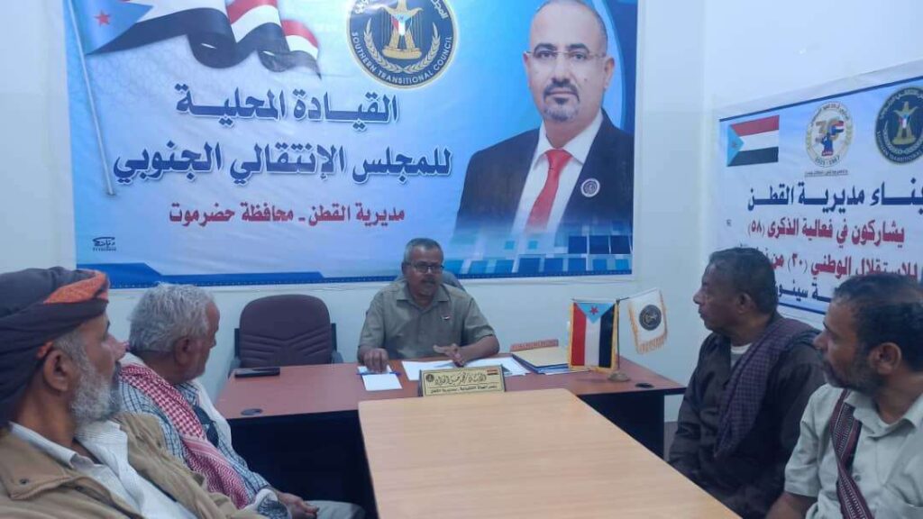 التقى رئيس الهيئة التنفيذية للقيادة المحلية للمجلس الانتقالي الجنوبي في مديرية القطن بمحافظة حضرموت، محمد الحداد، اليوم السبت، بأعضاء اللجان المحلية للمجلس في مراكز المديرية، لمناقشة الترتيبات الخاصة بتشكيل لجان مجتمعية في الأحياء السكنية بالمديرية.
