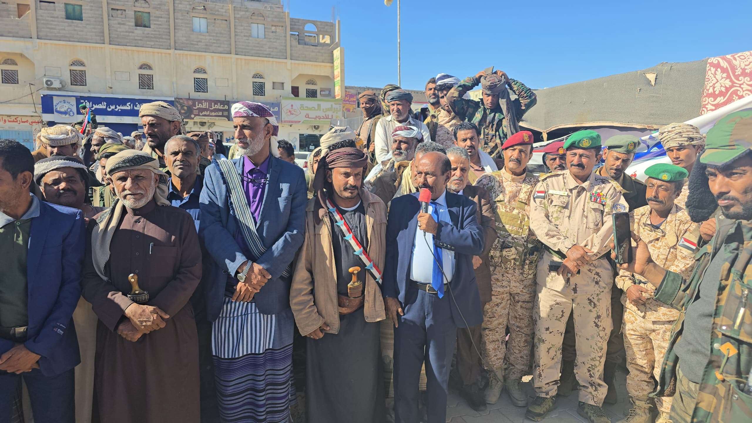 وأثناء وصول القيادات الأمنية والعسكرية، التي يترأسها العميد أحمد صالح العربي، أركان القوات البرية بالمحافظة، رحّب رئيس الهيئة التنفيذية للقيادة المحلية للمجلس الانتقالي الجنوبي بمحافظة شبوة، الشيخ لحمر علي لسود، بالقيادات العسكرية والأمنية، معتبرًا حضورهم تعزيزًا لوحدة الصف الجنوبي، ودعمًا لمسار النضال السلمي لتحقيق تطلعات شعب الجنوب.
