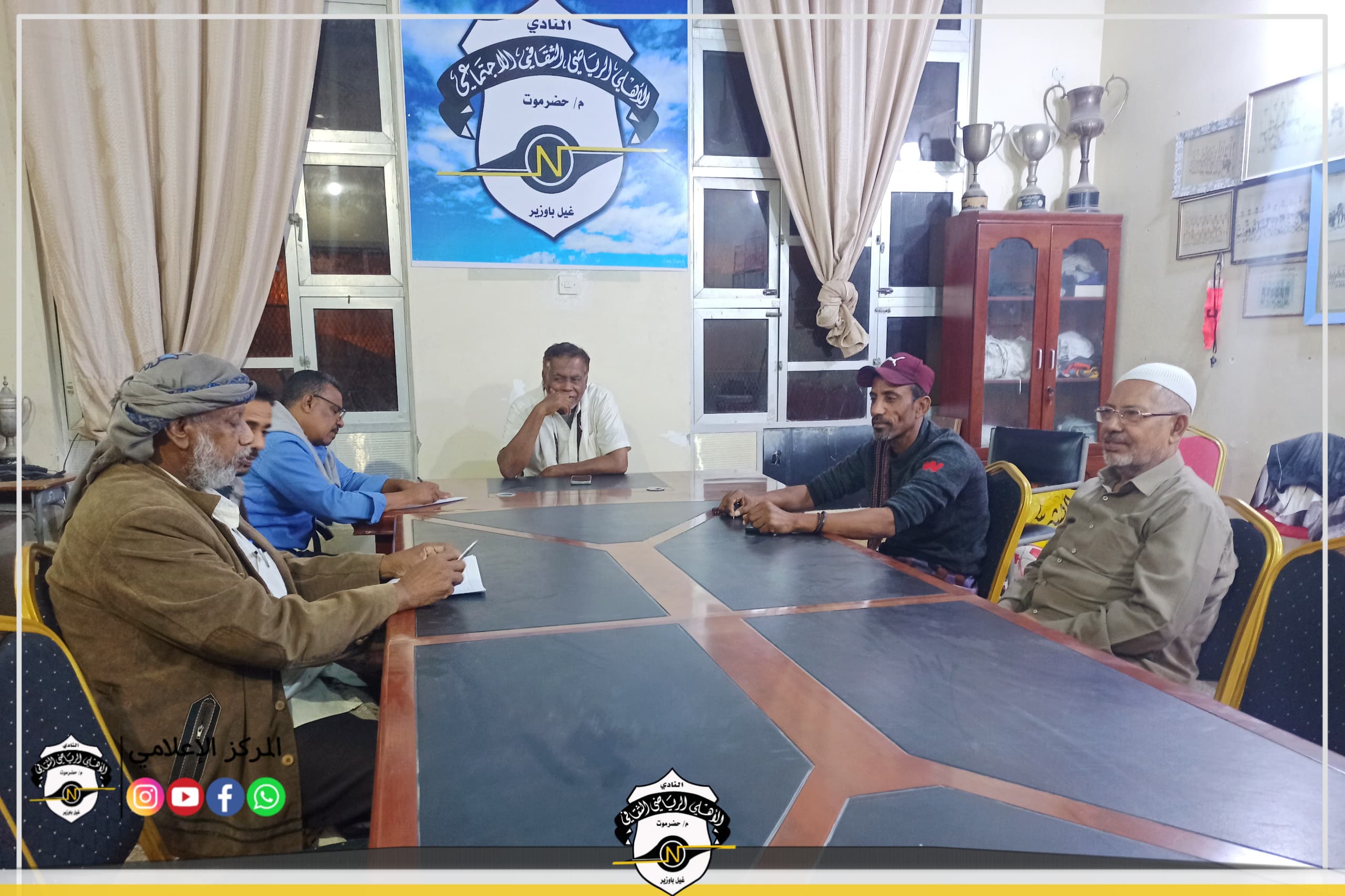 وترأس الاجتماع رئيس مجلس إدارة النادي الإعلامي عمر فرج عُبّد، وبحضور الأمين العام صالح يسلم الحوري، وسكرتير النشاط الرياضي عوض عبدالله باشكيل، والمسؤول المالي محفوظ فرج مخير، ومسؤول الثقافة والمجتمع عبدالقادر محمد بكمي، إلى جانب مشرف لعبة الكرة الطائرة بالنادي منسق البطولة سمير عمر محيمود.