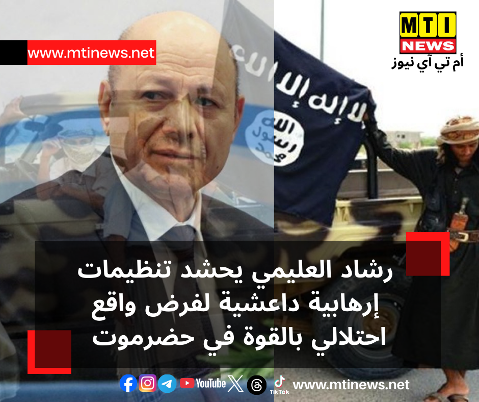 اتهمت جهات سياسية وجماهيرية حضرمية رئيس مجلس القيادة الرئاسي رشاد العليمي بالوقوف خلف تحركات و تحشيدات لتنظيمات إرهابية تتبع داعش وصفتها بـ«الخطيرة» تهدف إلى زعزعة الأمن والاستقرار في محافظة حضرموت ، محذّرة مما قالت إنه يسعى استخدام قوى متطرفة ارهابية وأدوات فوضوية لفرض واقع احتلالي بالقوة في حضرموت .