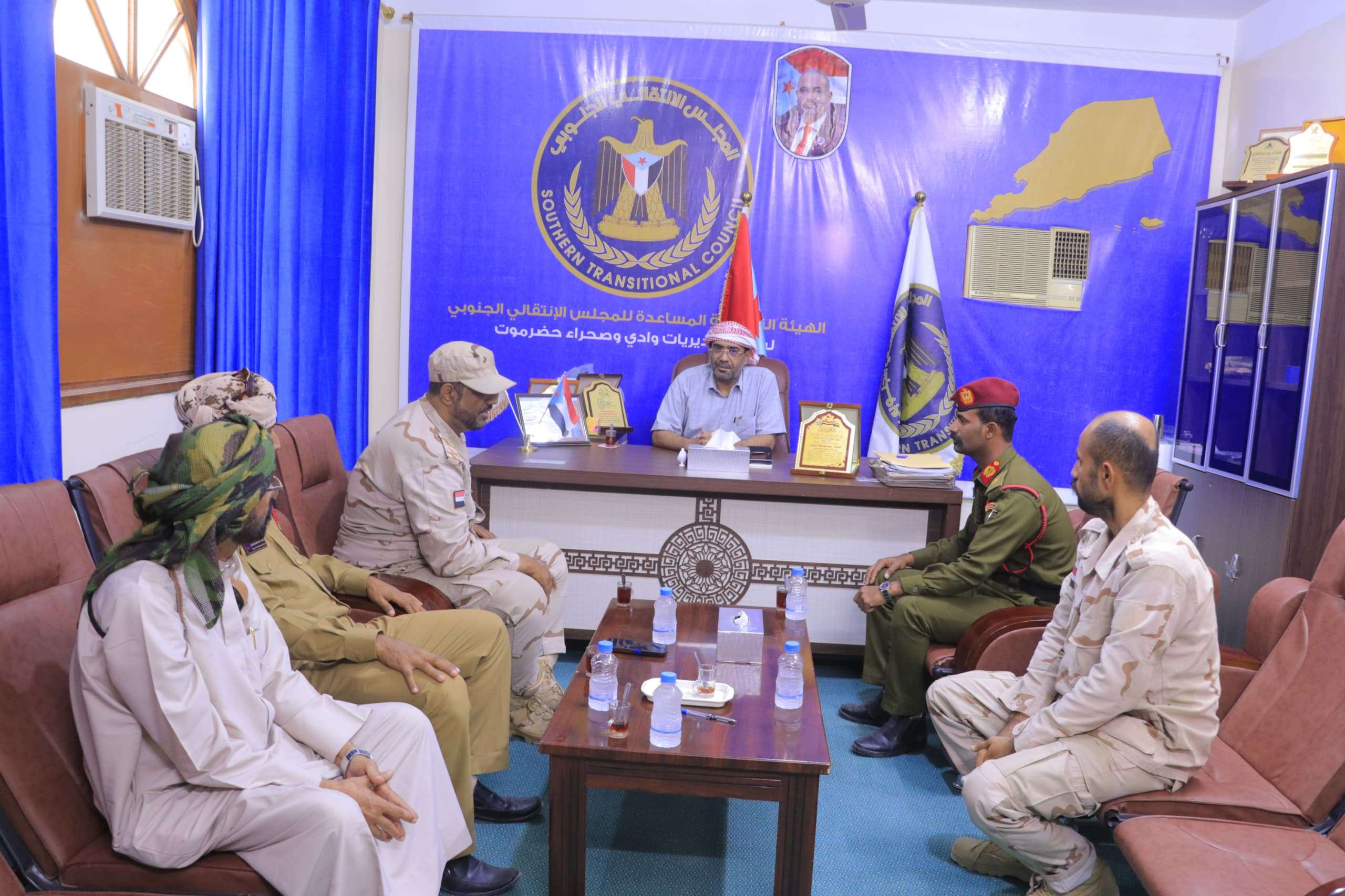 التقى رئيس الهيئة التنفيذية المساعدة للمجلس الانتقالي الجنوبي لشؤون مديريات وادي وصحراء حضرموت، محمد عبدالملك الزبيدي، اليوم الثلاثاء، بقائد كتيبة النخبة مشاة المستقلة في معسكر العند، المقدم أحمد محمد يسلم بامدحن.