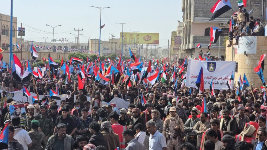 وردّد المشاركون هتافات تؤكد تمسكهم بالقضية الجنوبية ودعمهم للمجلس الانتقالي الجنوبي وقيادته السياسية، مشددين على حق شعب الجنوب في استعادة دولته كاملة السيادة.