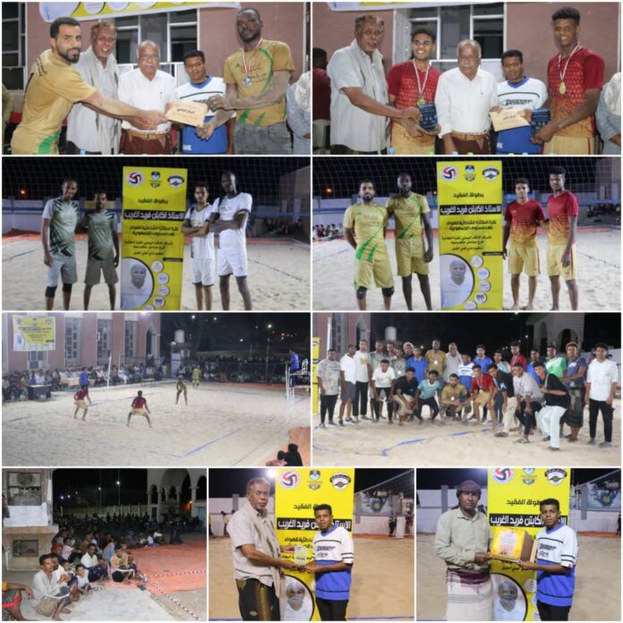 اختتمت مساء الجمعة 16 يناير 2026م منافسات بطولة الفقيد الكابتن فريد عبدالله الغريب -رحمه الله- للكرة الطائرة الشاطئية التي نظمها النادي الأهلي بغيل باوزير، تحت إشراف اتحاد الكرة الطائرة بساحل حضرموت، بمشاركة لاعبين ونجوم لعبة الكرة الطائرة على مستوى الجمهورية.