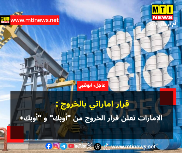 أعلنت دولة الإمارات العربية المتحدة اليوم قرارها بالخروج من منظمة الدول المصدرة للنفط “أوبك” و “أوبك +” على أن يسري القرار اعتباراً من الأول من مايو 2026.